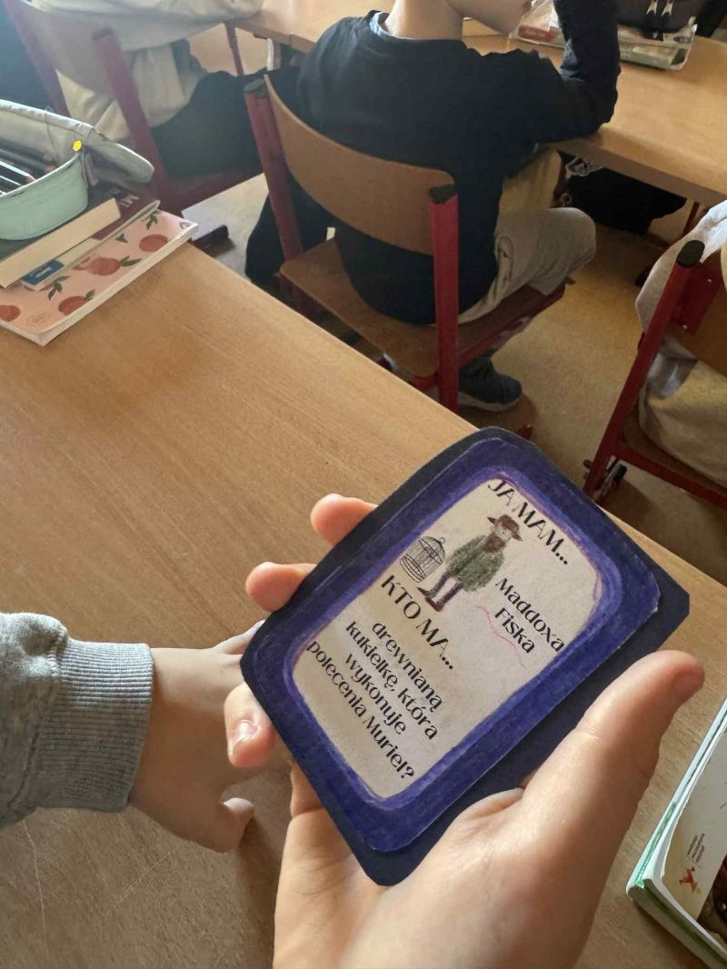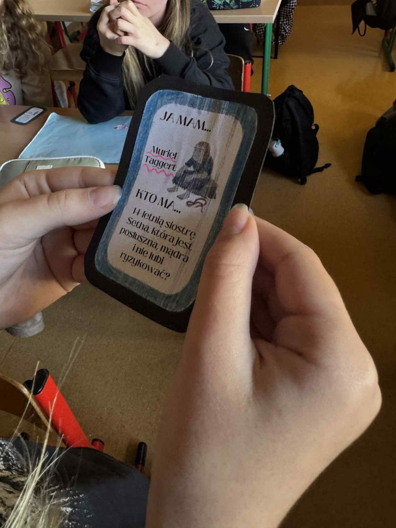 Podczas omawiania lektury „Baśniobór” Brandona Mulla uczniowie klasy 5d wzięli udział w ciekawej grze „Ja mam, kto ma…”, dzięki której utrwalili wiedzę o bohaterach książki.