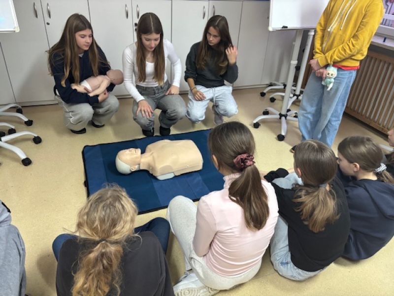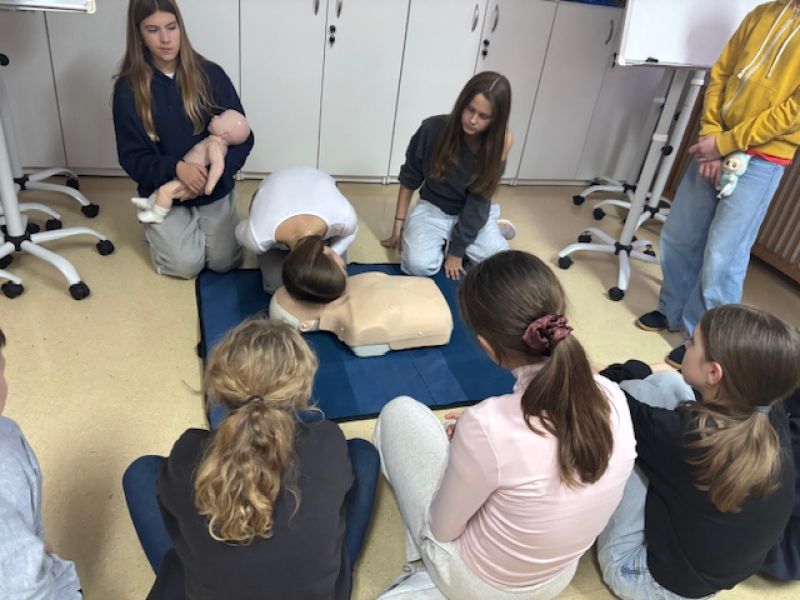 Ósmoklasistki, chodzące na koło naukowe ,,Nauka skarb drogi”, prezentowały młodszym biologom, resustytucję. Uczennice zadbały o szczegóły i ćwiczenia, podkreślając wagę ,,złotej” i udzielania pierwszej pomocy.