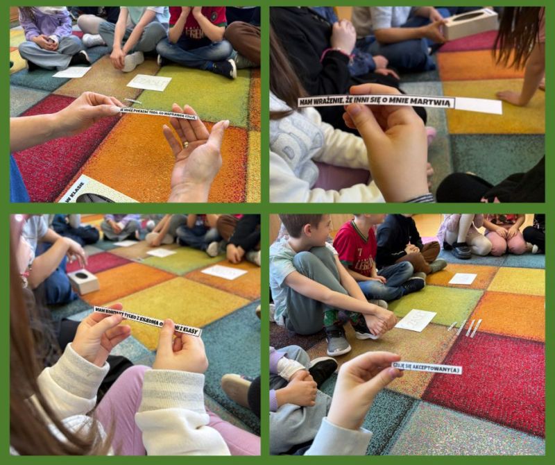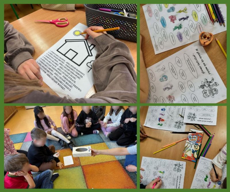 W dalszej części zajęć dzieci uczyły się rozpoznawać i nazywać swoje emocje oraz zastanawiały się, jak można reagować w sytuacjach konfliktowych bez użycia agresji. Omówiono sposoby radzenia sobie z trudnymi sytuacjami, takie jak używanie komunikatów „nie podoba mi się to”, odejście od miejsca konfliktu, rozmowa o swoich uczuciach czy zwrócenie się o pomoc do dorosłego. Podkreślono, że reagowanie na przemoc nie jest skarżeniem, lecz dbaniem o bezpieczeństwo swoje i innych.