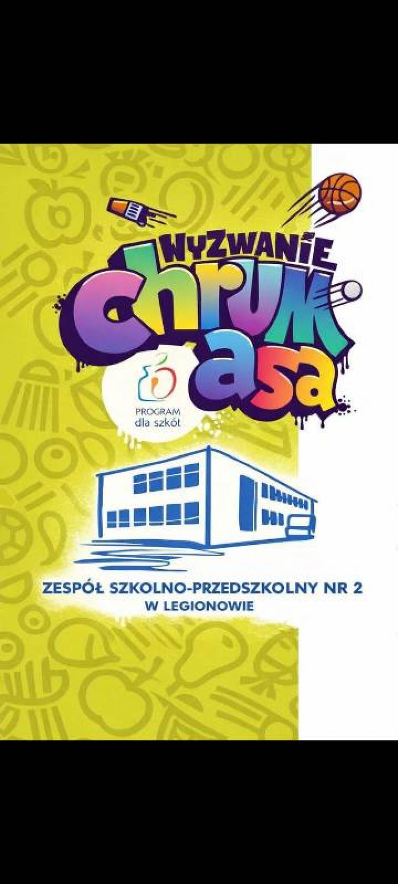 Nasza szkoła bierze udział w „Sportowym Wyzwaniu Chrumasa” realizowanym w ramach Programu dla Szkół. Uczniowie aktywnie uczestniczą w zajęciach ze skakanką, promując zdrowy styl życia oraz znaczenie codziennego spożywania owoców i warzyw. Poprzez zabawę i ruch pokazujemy, że zdrowie i aktywność fizyczna idą w parze!