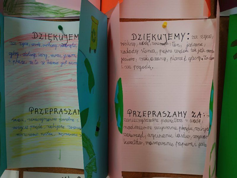 Uczniowie klas 1-3 naszej szkoły co roku aktywnie włączają się w obchody Dnia Ziemi. Również w tym roku nie zabrakło zaangażowania i ciekawych inicjatyw związanych z troską o naszą planetę. W ramach obchodów odbyło się wiele różnorodnych działań, takich jak sprzątanie terenu wokół szkoły, warsztaty recyklingowe, sadzenie roślin oraz wykonywanie prac plastycznych. Uczniowie przygotowali także plakaty zachęcające do dbania o środowisko, a także pisali listy do Ziemi, w których wyrażali swoją troskę i pomysły na jej ochronę. Podczas Dnia Ziemi promowalismy również zdrowy styl życia - dzieci z radością przygotowały pyszne i zdrowe kanapki oraz pełnowartościowe sałatki