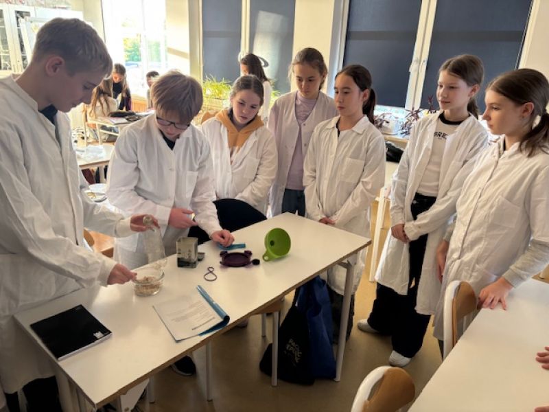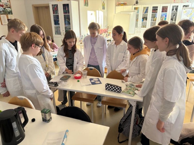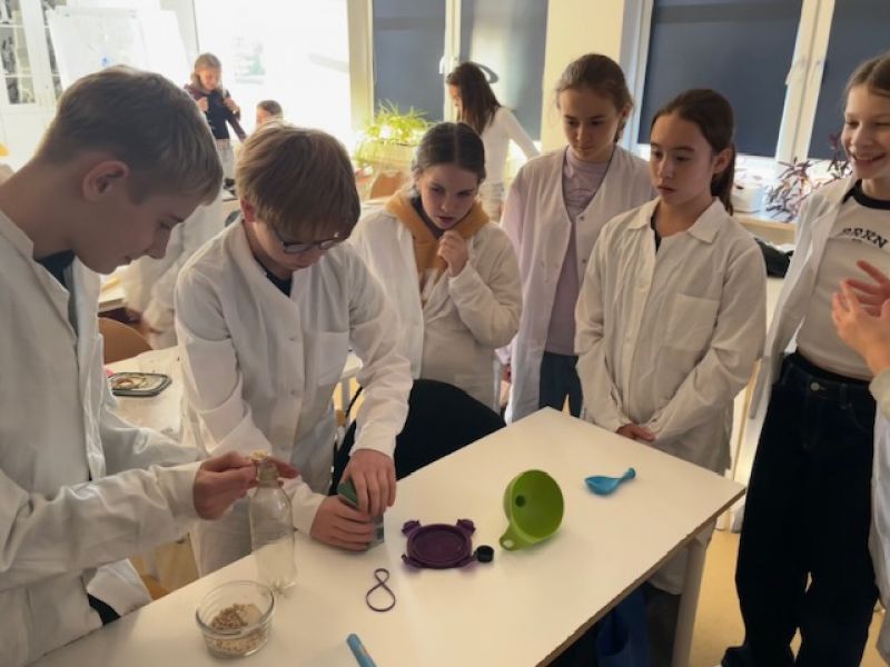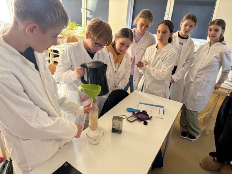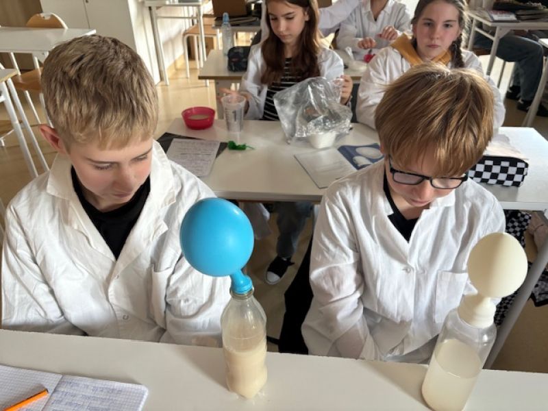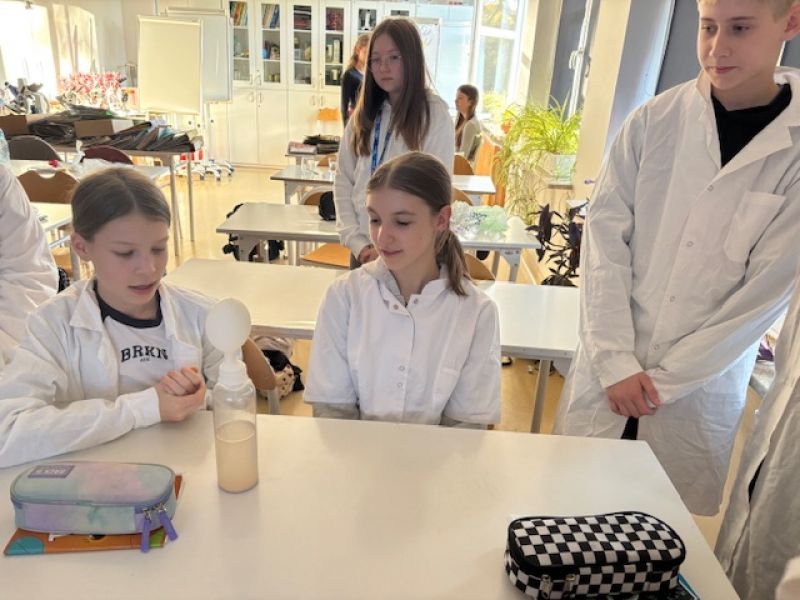 Uczniowie koła naukowego ,,Nauka skarb drogi” przeprowadzali fermentację alkoholową. Obserwując rozmnażanie drożdży nie mogli się nadziwić, że w takim szybkim tempie wydziela się CO2.