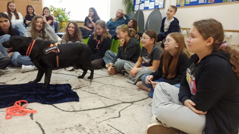 Klasa 6b uczestniczyła w zajęciach w ramach projektu „Z łapą na sercu – bezpieczne spotkania z psem i sobą”, realizowanym przez Fundację Edukacyjną ARGO. Prowadząca p. Barbara Wymazał Prezes Zarządu Fundacja Edukacyjna ARGO.