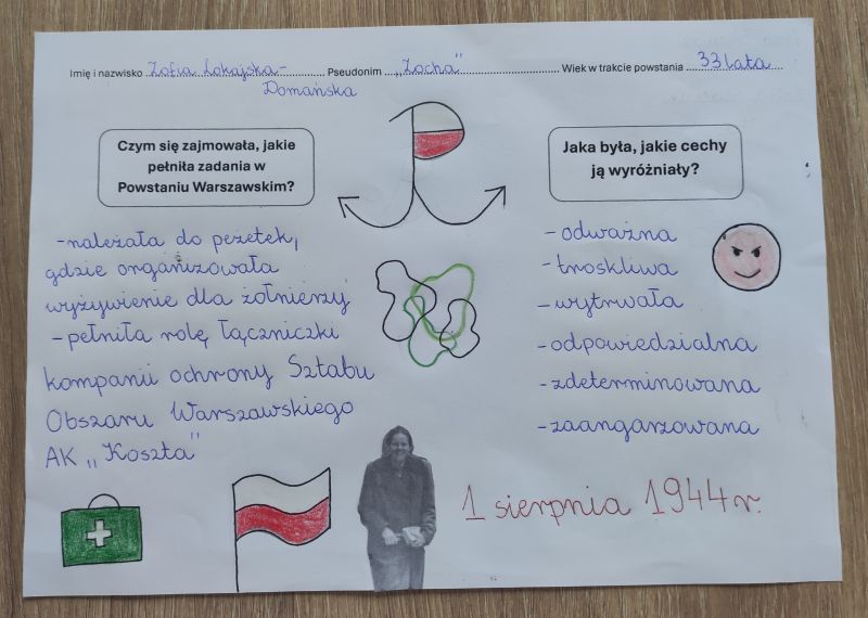 Są to spotkania z historią dotyczące Powstania Warszawskiego które wybuchło 1 sierpnia 1944 r., losów uczestników i ich poświęcenia. W ramach zajęć omawialiśmy wartości takie jak odwaga, patriotyzm i solidarność.