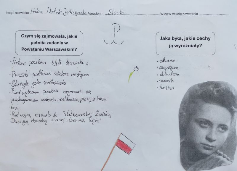 Dzięki tym zajęciom młodzież mogła dowiedzieć się m.in., że młoda żyjąca w tamtym czasie poetka Krystyna Krahelska pseudonim „Danuta” która zginęła w pierwszych dniach powstania, napisała znaną każdemu pieśń „Hej chłopcy bagnet na broń”.