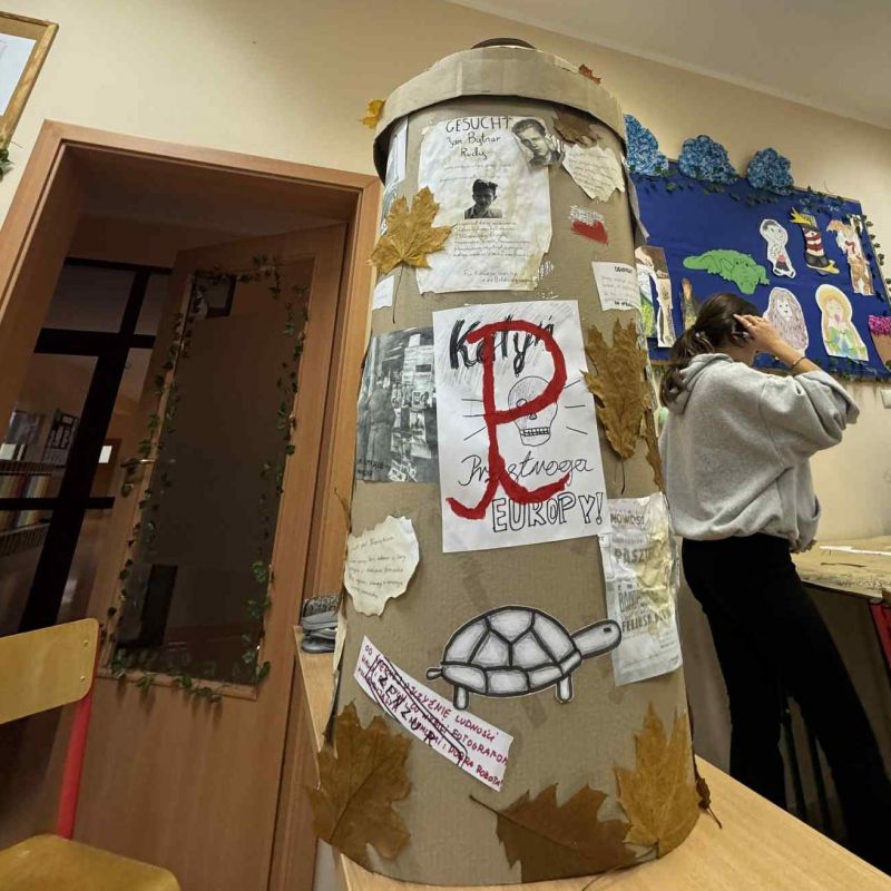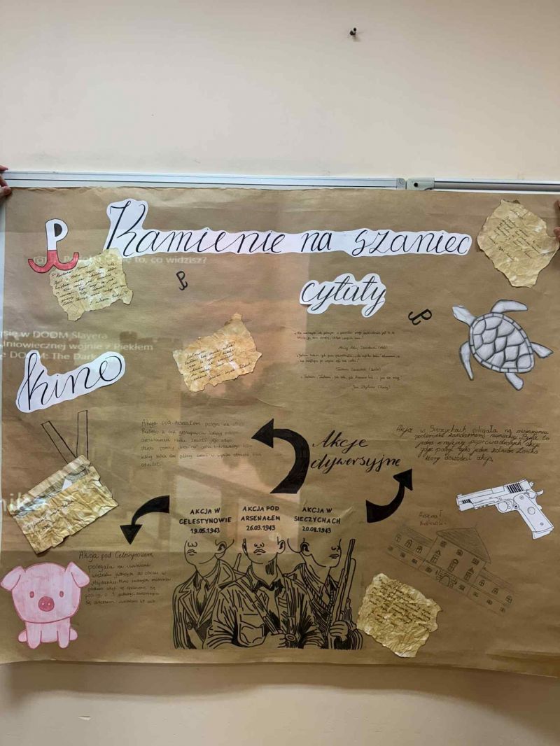 Uczniowie przygotowali murale i słupy ogłoszeniowe, podsumowując najważniejsze wątki i motywy z książki