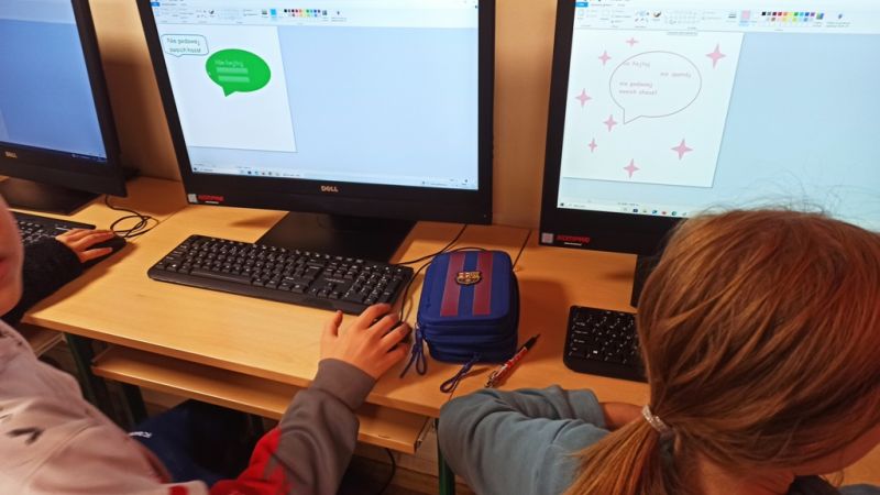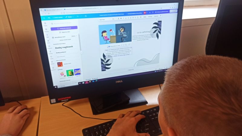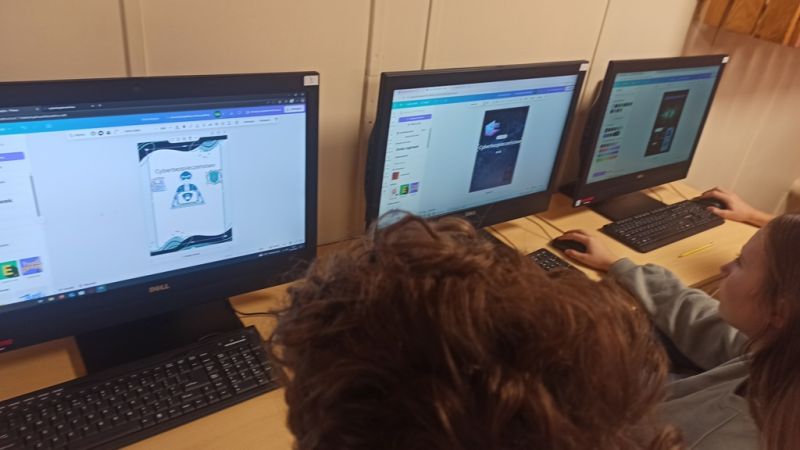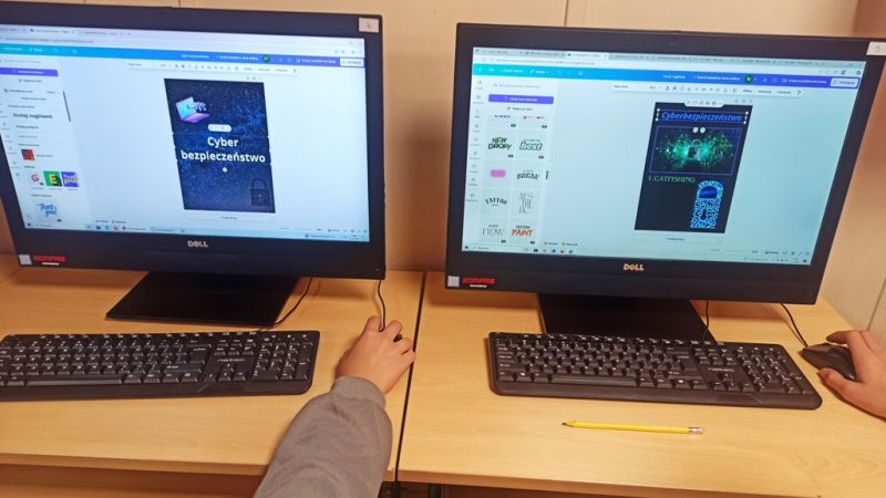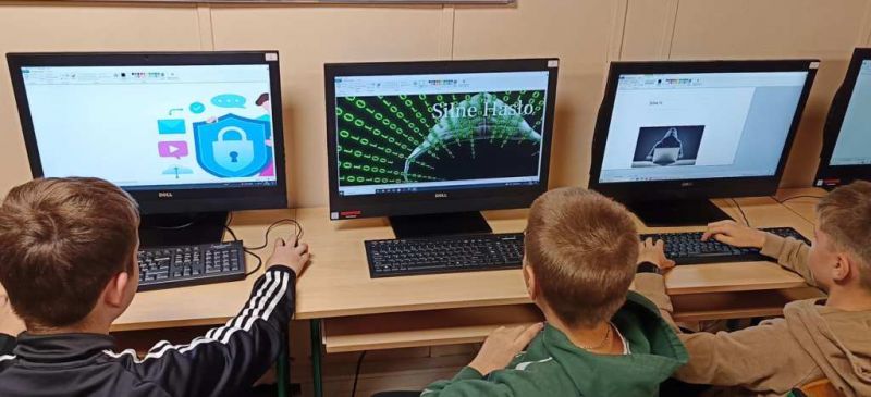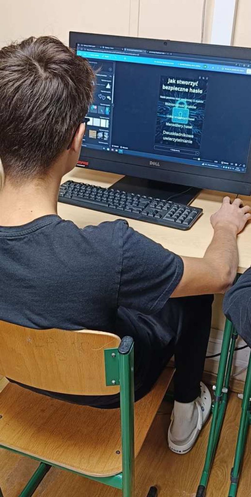 Po zapoznaniu się z materiałami edukacyjnymi uczniowie aktywnie uczestniczyli w różnych formach pracy – przygotowywali plakaty, rebusy, prezentacje multimedialne, a także rozwiązywali quizy sprawdzające ich wiedzę o cyberbezpieczeństwie.