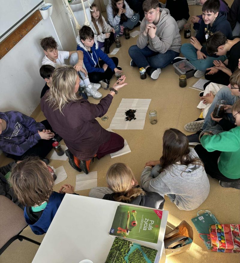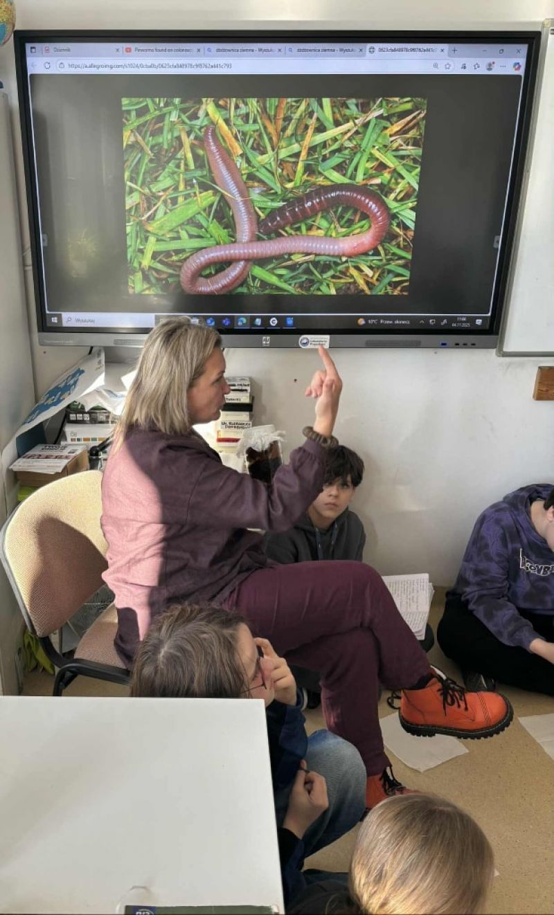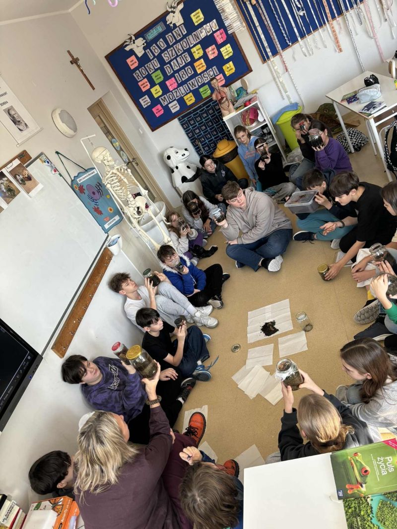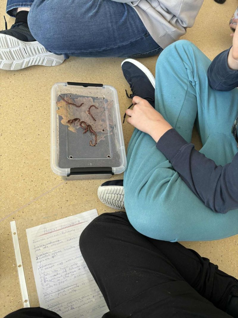 Uczniowie klasy VI c prowadzili obserwację skąposzczeta. W ciągu kilku dni udowodnili pozytywne znaczenie dżdżownicy, która, przemieszczając się w słoiku, wymieszała trzy warstwy, robiąc tunele i napowietrzając je.