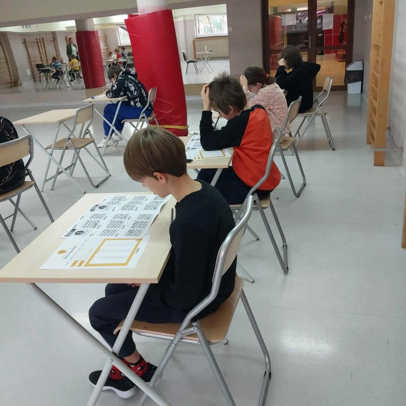 Uczestnicy z zaangażowaniem i skupieniem rozwiązywali różnorodne zadania szachowe, pokazując swoje logiczne myślenie, koncentrację i pasję do królewskiej gry.