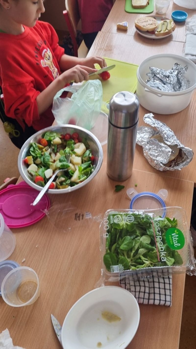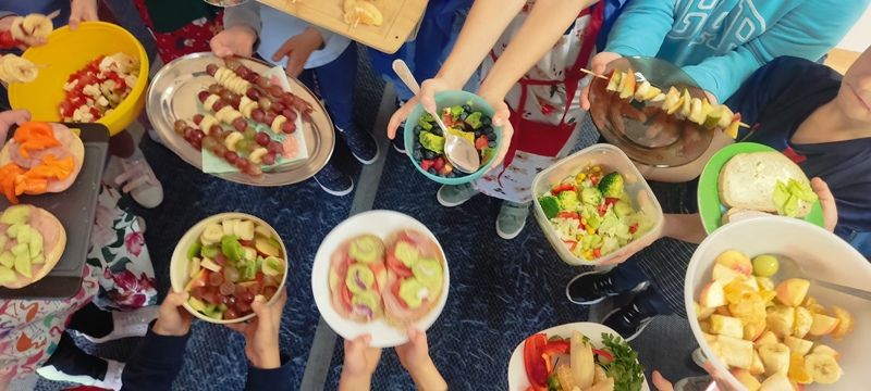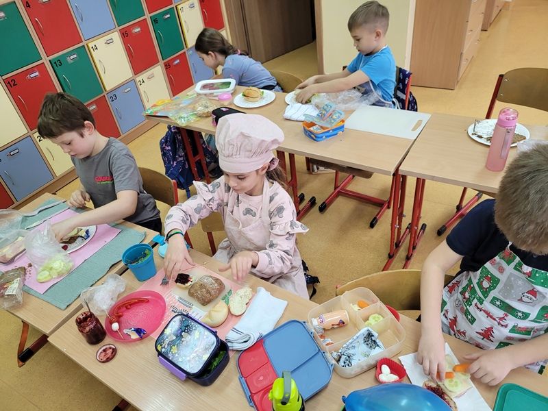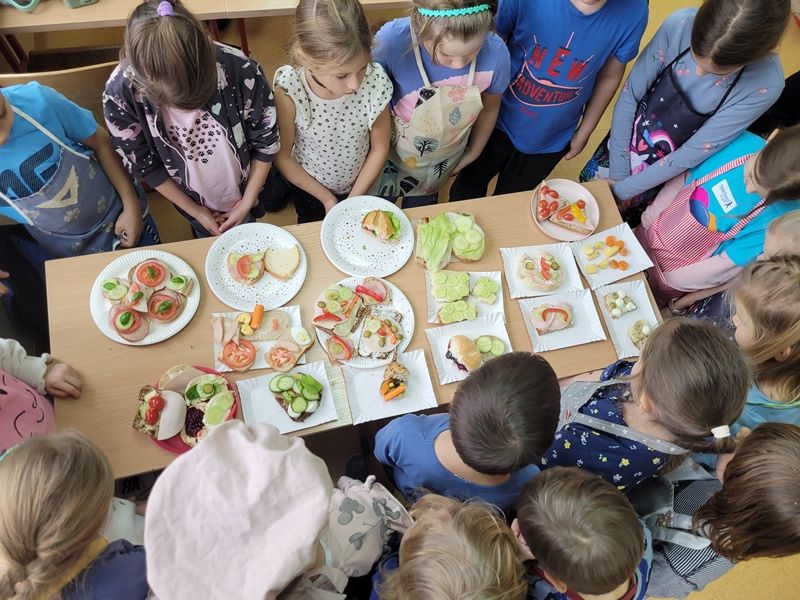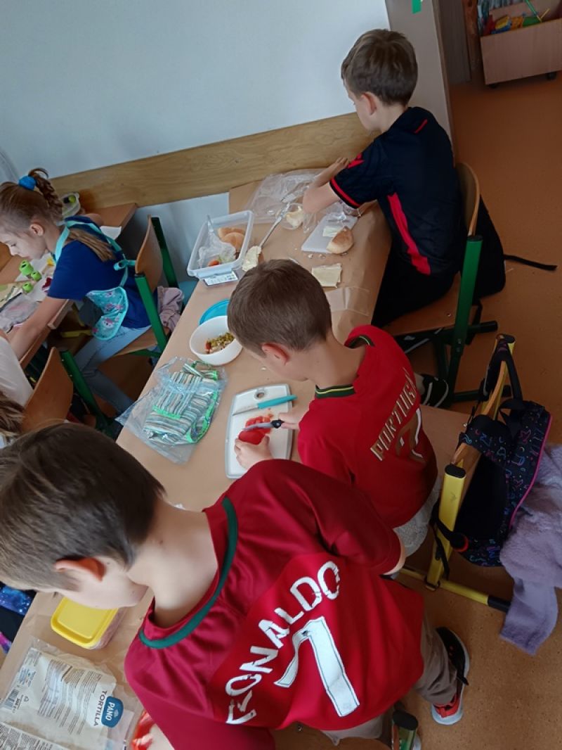 Dzieci podczas sporządzania posiłku kształciły odpowiednie nawyki żywieniowe, dbałość o higienę oraz rozwijały kreatywność i wyobraźnię. Zwieńczeniem tego dnia był happening na świeżym powietrzu z niebieskimi balonami.