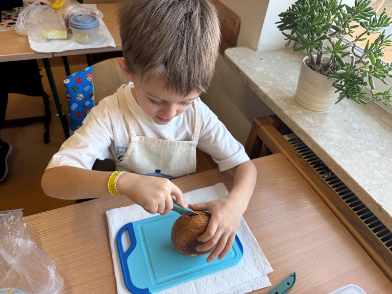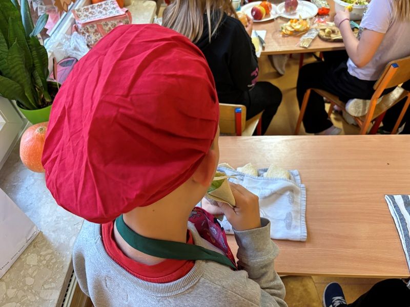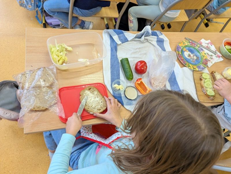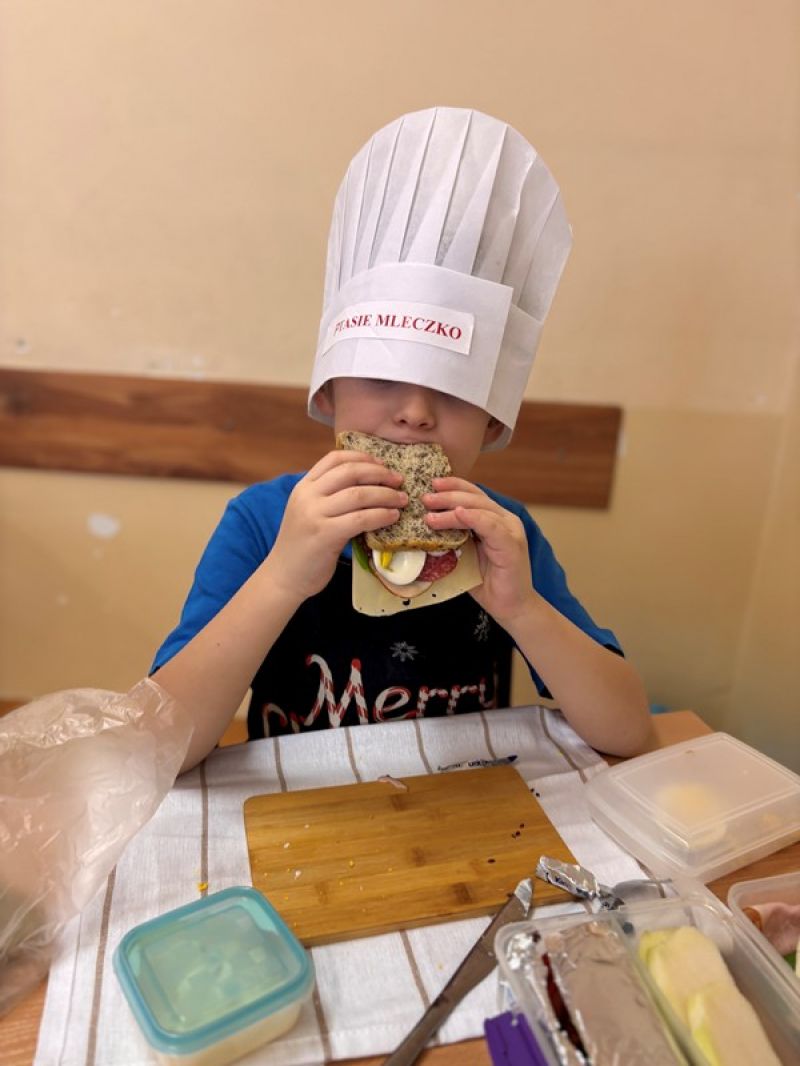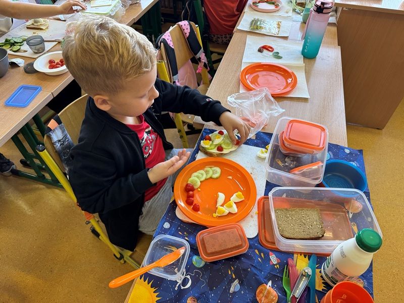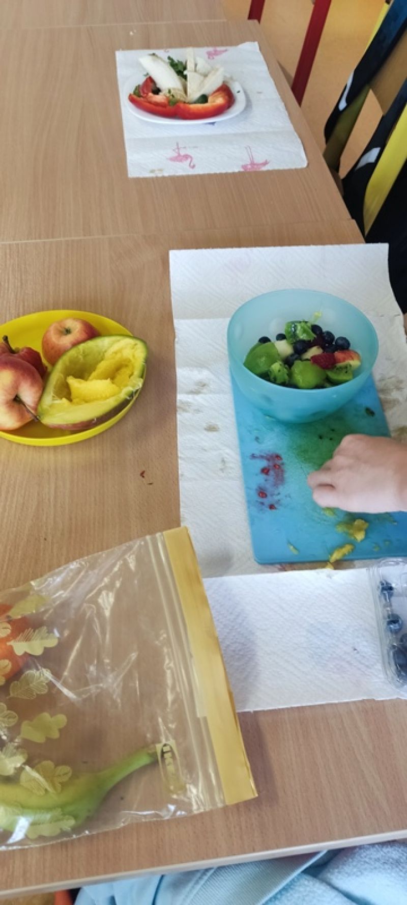 Dzieci podczas sporządzania posiłku kształciły odpowiednie nawyki żywieniowe, dbałość o higienę oraz rozwijały kreatywność i wyobraźnię. Zwieńczeniem tego dnia był happening na świeżym powietrzu z niebieskimi balonami.