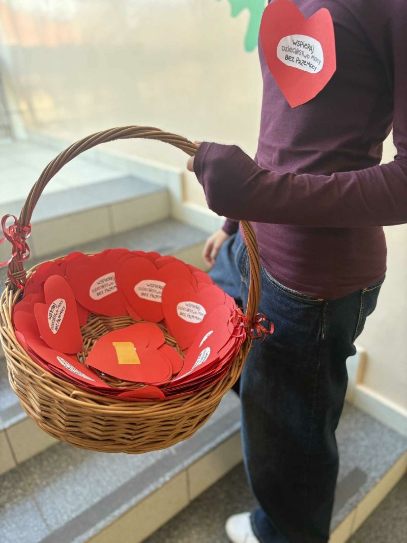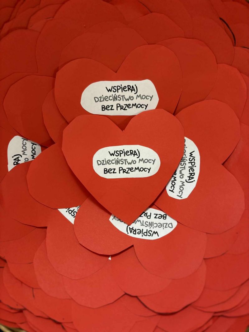 Przez cały dzień nasi uczniowie z zaangażowaniem rozdawali papierowe serca z logo akcji, niosąc prosty, ale potężny komunikat: Każde dziecko zasługuje na miłość, szacunek i bezpieczny dom!
