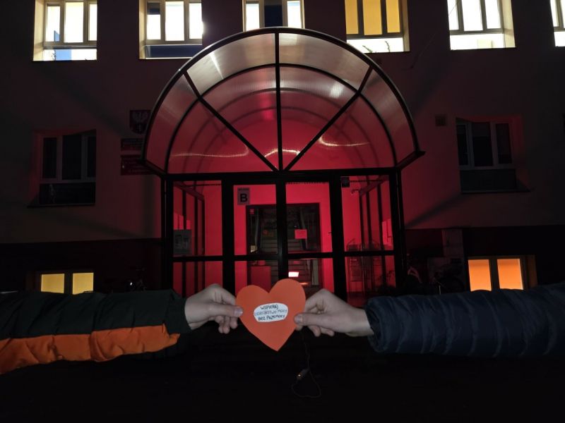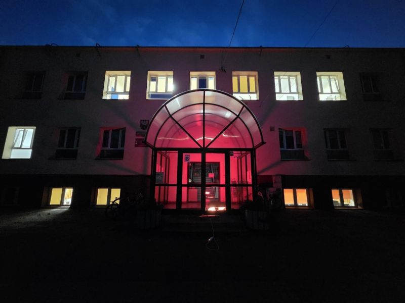 Symbolicznie podświetliliśmy nasz budynek na czerwono, dając widoczny znak, że bezpieczeństwo i godność każdego dziecka są dla nas priorytetem.