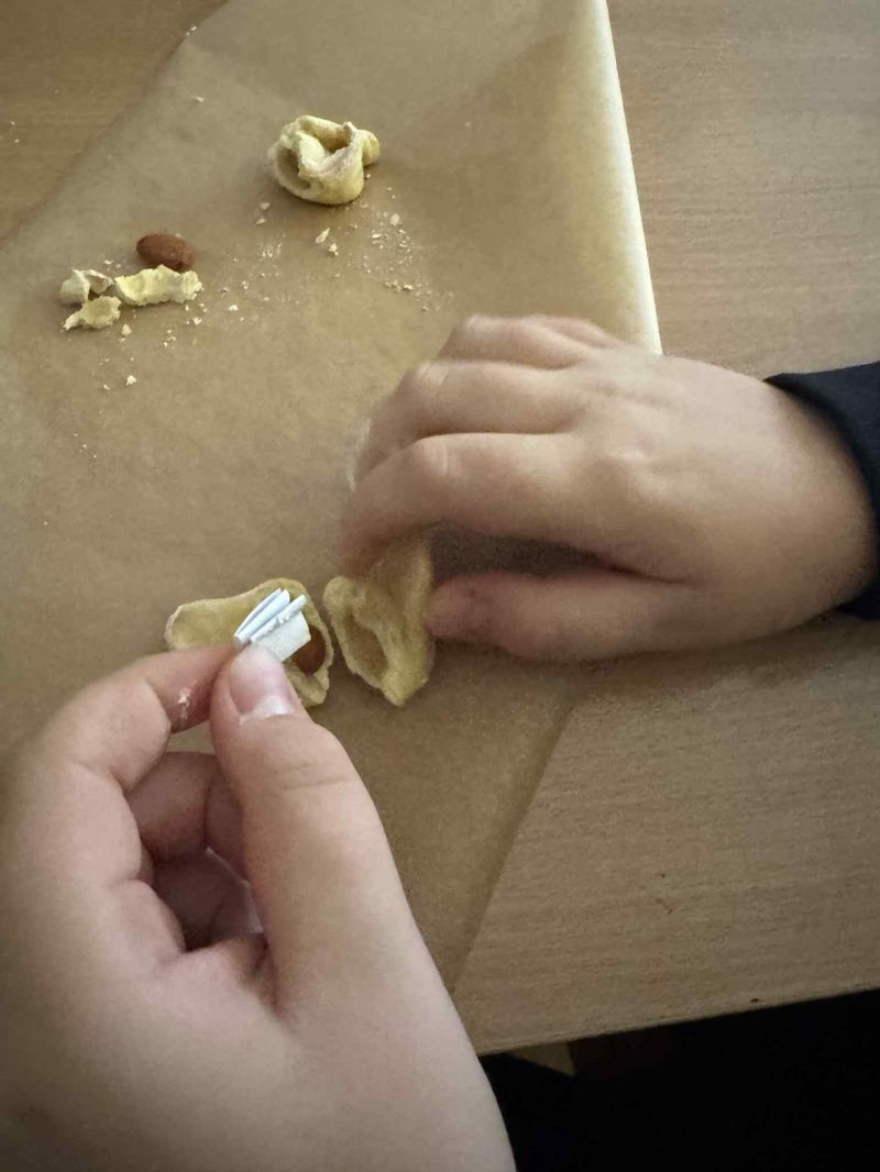 Jedna z uczennic przygotowała pyszne andrzejkowe ciasteczka z ukrytymi w środku… pytaniami z języka polskiego!