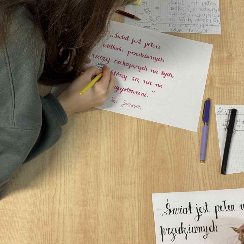 Uczniowie pisali konkurs pod kierunkiem pani Marty Sobieraj oraz Anety Kołodziejskiej. Zmierzyli się z wymagającym zadaniem pięknego pisania na gładkiej kartce, pokazując, że mimo rozwoju technologii pismo odręczne wciąż ma swój wyjątkowy urok i warto je pielęgnować.