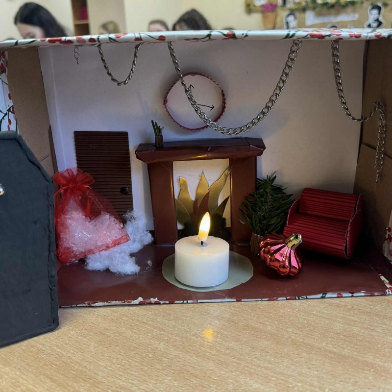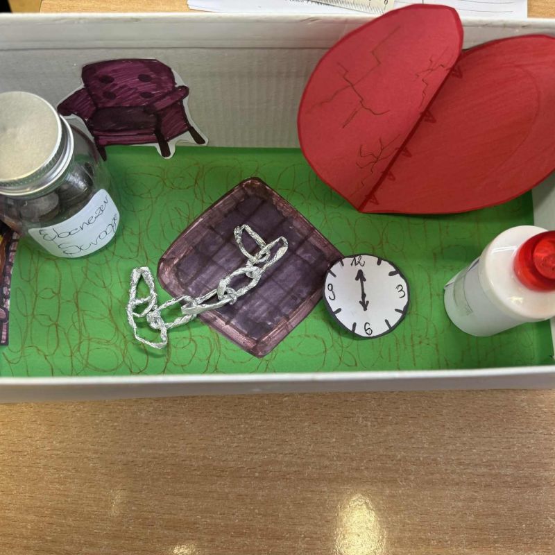Klasa 7d pod opieką p. Marty Sobieraj w niezwykle kreatywny sposób zmierzyła się z „Opowieścią wigilijną. Uczniowie przygotowali pudełka lekturowe i opowiadali o wybranym wydarzeniu z lektury.