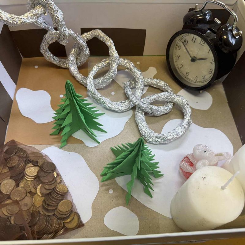 Łańcuchy, zegary, klucze, dom Scrooge’a czy postacie duchów stały się nośnikami znaczeń i emocji. Każdy przedmiot miał swoje uzasadnienie i prowadził do refleksji nad przemianą Ebenezera Scrooge’a