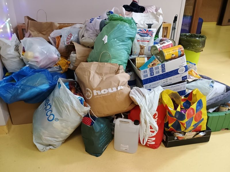 Przed świętami zakończono zbiórkę darów na rzecz bezpańskich zwierząt ze schroniska w Skierniewicach "Podaj łapę". Uczennice i uczniowie z klas 2b i 2c, jak co roku, zorganizowali zbiórkę, która wspomogła schronisko i sprawiła, że zwierzaki także znalazły coś pod choinką. Chcemy gorąco podziękować wszystkim nauczycielom zachęcającym dzieci i młodzież do zbiórki oraz dzieciakom i ich rodzicom, którzy wsparli naszą coroczną akcję i pomogli zebrać żywność i potrzebne przedmioty. Dziękujemy także opiekunkom sklepiku szkolnego, które wraz ze swoimi podopiecznymi zebrały fundusze na zakup darów. Podziękowanie należy się także tacie Janka z klasy 2c, który wszystko zgrabnie przetransportował do wspomnianego schroniska, za co spotkał się z wyrazami ogromnej radości i wdzięczności za pomoc.