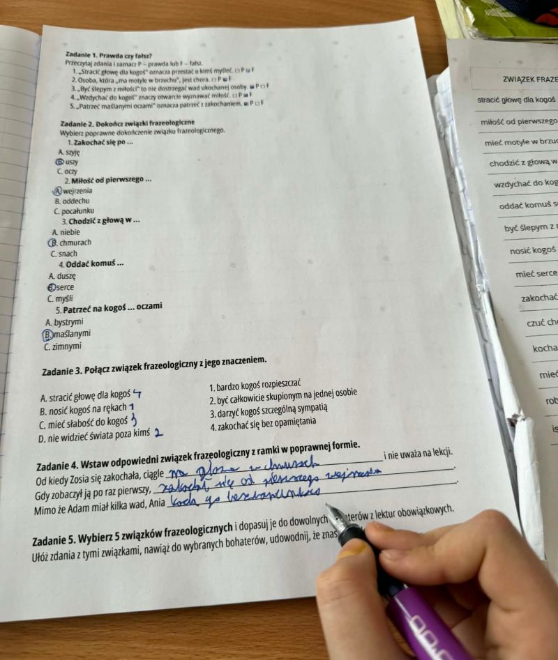 Podczas zajęć poszukiwaliśmy i omawialiśmy związki frazeologiczne, ucząc się ich znaczenia w ciekawy i kreatywny sposób.