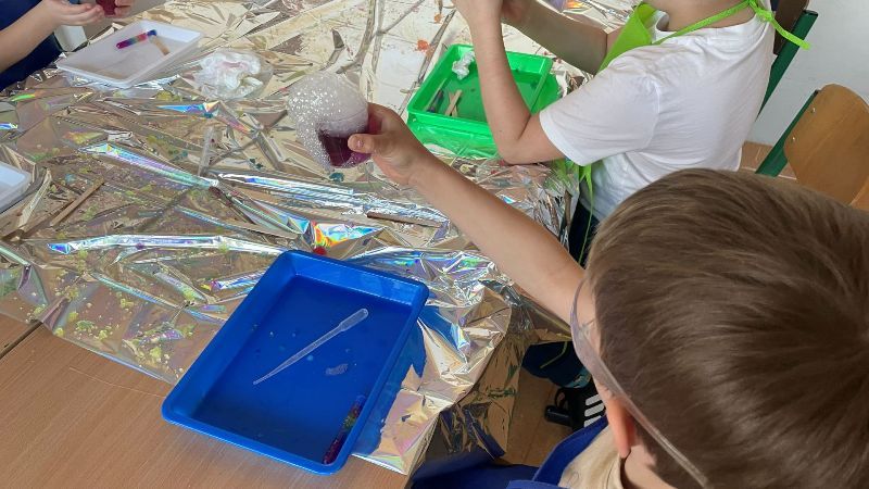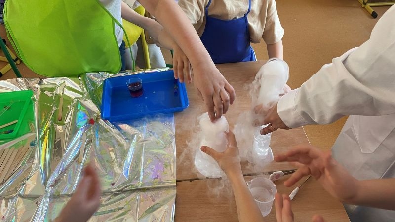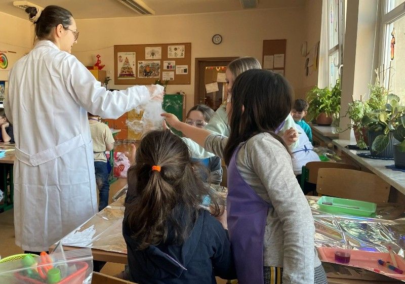 W marcu uczniowie klasy 2e wzięli udział w warsztatach chemicznych podczas których z radością odkrywali świat eksperymentów. Stworzyli własną tęczę, poznali tajemnice suchego lodu i wyczarowali magiczną chmurkę. Było ekscytująco i wystrzałowo. Dziękujemy pani Iwonie Łozińskiej-Raj za bardzo ciekawe zajęcia.