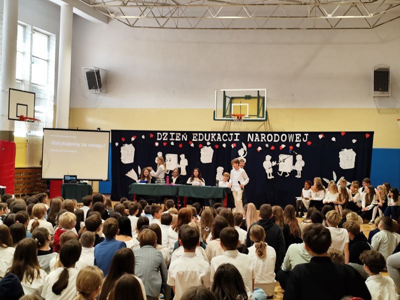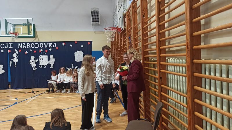 W programie uroczystości znalazły się występy szkolnego chóru, który zachwycił swoim śpiewem oraz humorystyczna scenka kabaretowa w wykonaniu uczniów klasy 6e, przyjęta przez widownię z wielkim entuzjazmem.