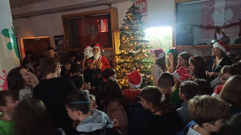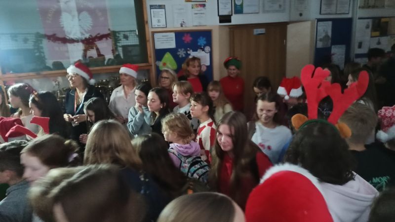 W poniedziałek 8 grudnia na szkolnym korytarzu odbyło się wspólne rozświetlenie choinki.
