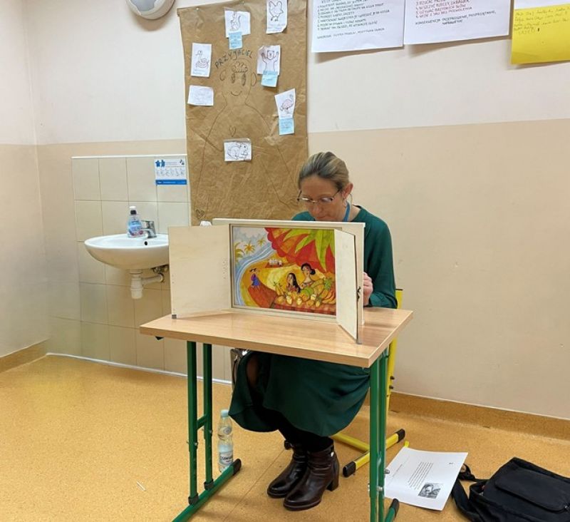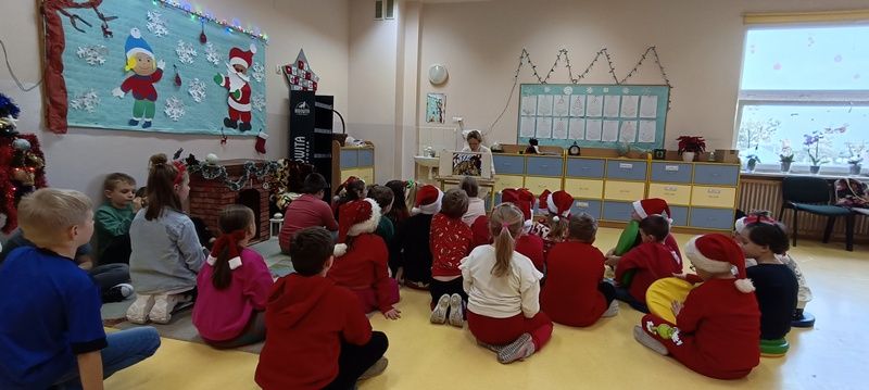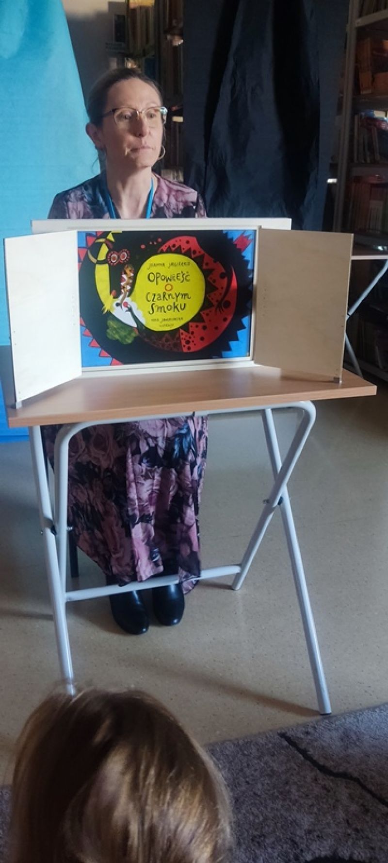 W ostatnim czasie dzieci miały okazję uczestniczyć w wyjątkowym wydarzeniu artystycznym - teatrzyku Kamishibai, który z ogromnym zaangażowaniem i pasją poprowadziła nauczycielka, pani Nina Stadnicka. To niezwykłe przedstawienie od pierwszych chwil przyciągnęło uwagę małych widzów i przeniosło ich w świat wyobraźni, emocji oraz pięknej opowieści. Starannie dobrane obrazy oraz płynna narracja sprawiły, że dzieci z zainteresowaniem śledziły kolejne etapy historii. Teatrzyk Kamishibai uczył, rowijał słuchanie ze zrozumieniem, koncentrację oraz wrażliwość na sztukę. Przedstawienie było doskonałym przykładem twórczej pracy nauczycielki i pokazało, jak w prosty sposób, a zarazem niezwykle efektowny można zachęcić dzieci do obcowania z lieteraturą i teatrem.