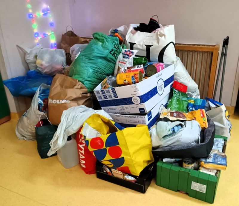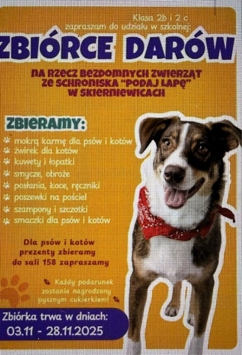 Przed świętami zakończono zbiórkę darów na rzecz bezpańskich zwierząt ze schroniska w Skierniewicach "Podaj łapę". Uczennice i uczniowie z klas 2b i 2c, jak co roku, zorganizowali zbiórkę, która wspomogła schronisko i sprawiła, że zwierzaki także znalazły coś pod choinką. Chcemy gorąco podziękować wszystkim nauczycielom zachęcającym dzieci i młodzież do zbiórki oraz dzieciakom i ich rodzicom, którzy wsparli naszą coroczną akcję i pomogli zebrać żywność i potrzebne przedmioty. Dziękujemy także opiekunkom sklepiku szkolnego, które wraz ze swoimi podopiecznymi zebrały fundusze na zakup darów. Podziękowanie należy się także tacie Janka z klasy 2c, który wszystko zgrabnie przetransportował do wspomnianego schroniska, za co spotkał się z wyrazami ogromnej radości i wdzięczności za pomoc.