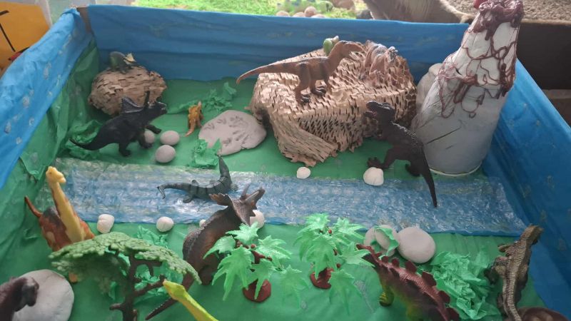 Tego dnia przedszkole zamieniło się w prehistoryczną krainę, pełną niezwykłych odkryć i sensorycznych doświadczeń. Dzieci miały okazję poznawać świat, w którym żyły dinozaury, angażując wszystkie zmysły – dotykały różnorodnych faktur, słuchały odgłosów prehistorycznej przyrody, obserwowały modele i ilustracje dawnych stworzeń, a także uczestniczyły w kreatywnych zabawach i eksperymentach. Był to dzień pełen radości, ciekawości i wspólnego odkrywania tajemnic przeszłości.