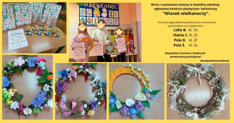 Wraz z nastaniem wiosny w świetlicy szkolnej ogłoszono konkurs plastyczno- techniczny "Wianek wielkanocny".
