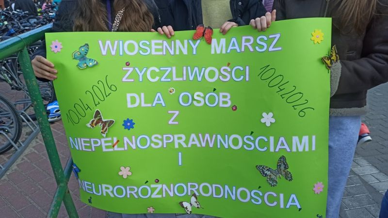 10 kwietnia 2026 roku w naszej szkole odbył się wyjątkowy Wiosenny Marsz Życzliwości dla Osób z Niepełnosprawnościami i Neuroróżnorodnością. Było to pełne ciepła i solidarności wydarzenie, w którym wzięli udział uczniowie klas 1-3 oraz 4-8, pokazując, jak ważne są wzajemny szacunek, akceptacja i wsparcie. Razem przeszliśmy, aby podkreślić, że każdy z nas jest ważny i zasługuje na zrozumienie oraz miejsce w społeczeństwie.