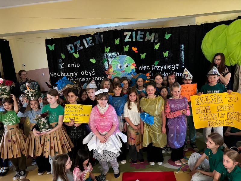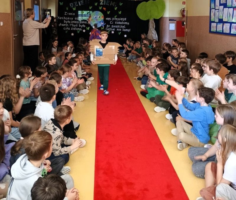 25.04.2025r. w klasach 1-3 w ramach obchodów Dnia Ziemi odbył się niezwykły pokaz mody ekologicznej. Dzieci w dwóch turach zaprezentowały bardzo pomysłowe stroje wykonane z różnorodnych materiałów przeznaczonych do recyklingu: m. in. kartonów, worków, folii spożywczej, gazet, butelek plastikowych, styropianu. Uczniowie doskonale sprawdzili się w rolach modeli i modelek, a także udowodnili, że moda i ekologia mogą iść w parze. Panie Dyrektor nagrodziły wszystkie kreacje. Dziękujemy dzieciom i ich rodzicom za zaprojektowanie, wykonanie i zaprezentowanie przepięknych, oryginalnych, ekologicznych strojów. Celem tego nietypowego pokazu było podnoszenie świadomości ekologicznej wśród uczniów, propagowanie idei czystego środowiska, zwrócenie uwagi na konieczność segregacji odpadów oraz rozwój kreatywności dzieci. Zapraszamy do obejrzenia galerii zdjęć!