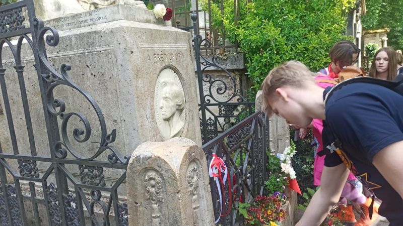 W Paryżu, obok atrakcji architektonicznych i zabytkowych uczniowie oddali hołd i złożyli kwiaty przy grobie Fryderyka Chopina na Cmentarzu Pere Lachaise oraz Marii Skłodowskiej-Curie.