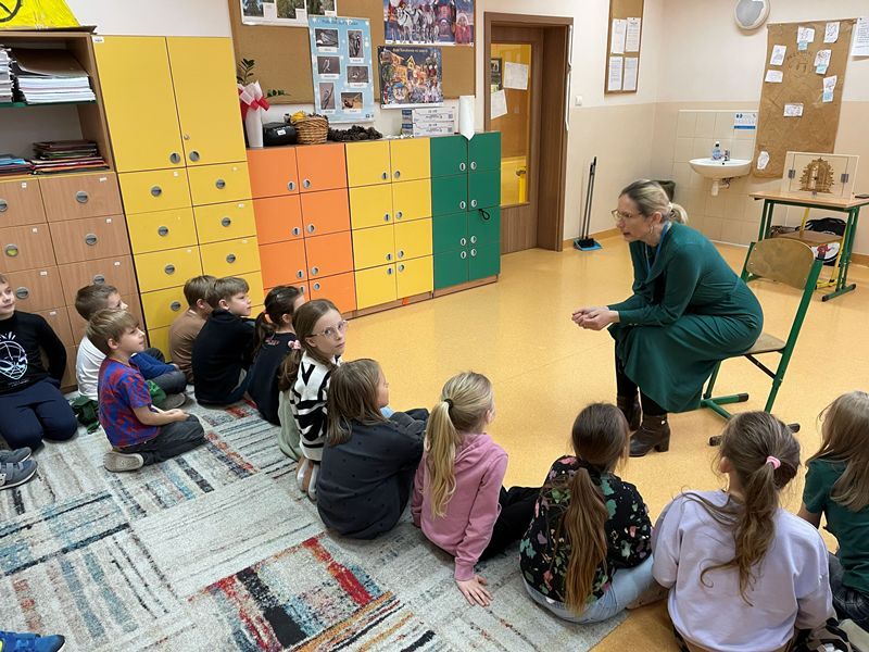 W ostatnim czasie dzieci miały okazję uczestniczyć w wyjątkowym wydarzeniu artystycznym - teatrzyku Kamishibai, który z ogromnym zaangażowaniem i pasją poprowadziła nauczycielka, pani Nina Stadnicka. To niezwykłe przedstawienie od pierwszych chwil przyciągnęło uwagę małych widzów i przeniosło ich w świat wyobraźni, emocji oraz pięknej opowieści. Starannie dobrane obrazy oraz płynna narracja sprawiły, że dzieci z zainteresowaniem śledziły kolejne etapy historii. Teatrzyk Kamishibai uczył, rowijał słuchanie ze zrozumieniem, koncentrację oraz wrażliwość na sztukę. Przedstawienie było doskonałym przykładem twórczej pracy nauczycielki i pokazało, jak w prosty sposób, a zarazem niezwykle efektowny można zachęcić dzieci do obcowania z lieteraturą i teatrem.
