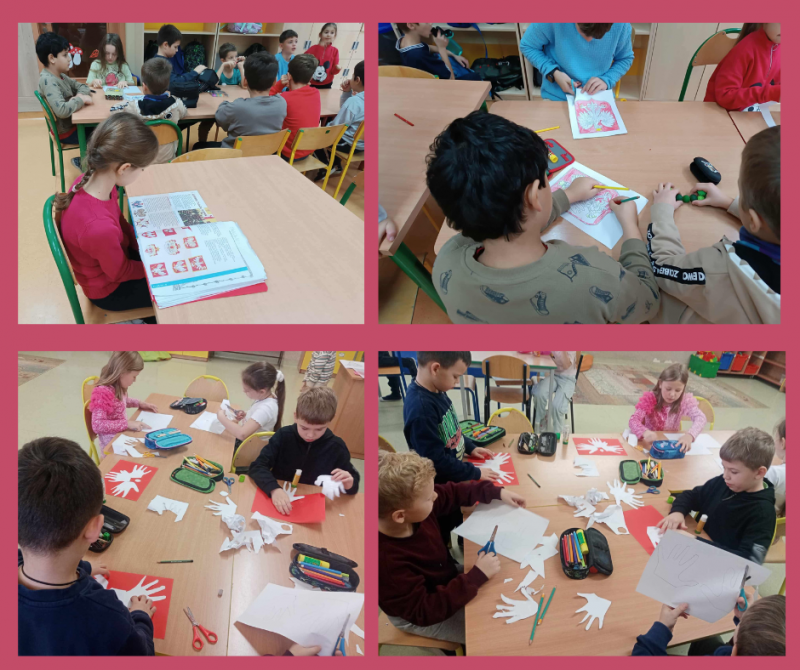 W dalszej części zajęć uczniowie rozmawiali o symbolach narodowych – fladze, godle i hymnie – oraz o tym, jak należy je szanować. W części plastycznej dzieci wykonały biało-czerwone kotyliony oraz rysunki przedstawiające flagę Polski i inne symbole narodowe. Prace zostały wyeksponowane na szkolnym korytarzu, tworząc patriotyczną gazetkę. Nie zabrakło również wspólnego śpiewania piosenek patriotycznych, takich jak „Jestem Polką i Polakiem” oraz zabaw ruchowych związanych z tematyką narodową. Na zakończenie dzieci dzieliły się swoimi przemyśleniami na temat tego, czym dla nich jest Polska i dlaczego warto być dumnym ze swojego kraju. Zajęcia przebiegły w miłej i podniosłej atmosferze, a uczniowie wykazali się dużym zaangażowaniem i zainteresowaniem tematem.