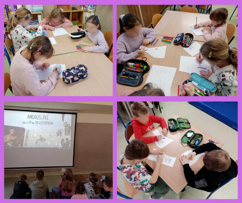 W świetlicy szkolnej zorganizowano zajęcia andrzejkowe o charakterze dydaktyczno-wychowawczym. Ich celem było zapoznanie uczniów z tradycjami i zwyczajami ludowymi związanymi z andrzejkami oraz kształtowanie postawy szacunku wobec dziedzictwa kulturowego. Podczas zajęć dzieci poznały historię andrzejek, znaczenie symboli wykorzystywanych we wróżbach oraz rolę obrzędów w kulturze polskiej. Uczniowie uczestniczyli w tematycznych zabawach edukacyjnych, które rozwijały umiejętność współpracy, komunikacji oraz logicznego myślenia. Zajęcia stanowiły połączenie nauki z aktywną formą spędzania czasu i sprzyjały integracji grup świetlicowych.