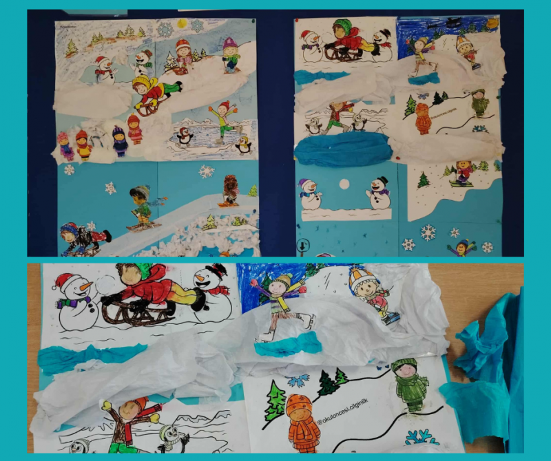 Podczas tematycznych zajęć świetlicowych, uczniowie uczestniczyli w różnych aktywnościach związanych z zimą. Podczas swobodnej wypowiedzi, dzieci rozmawiały o charakterystycznych elementach zimowej aury, dzieliły się własnymi spostrzeżeniami i doświadczeniami oraz wskazywały na ulubione formy zimowej zabawy. Ponadto wykonały prace przedstawiające zimowe zabawy na śniegu. Usprawnili swoją kreatywność, sprawność manualną oraz umiejętność współpracy.