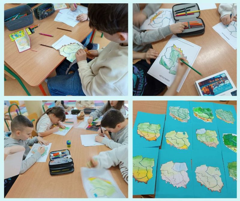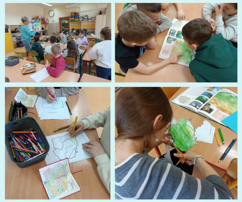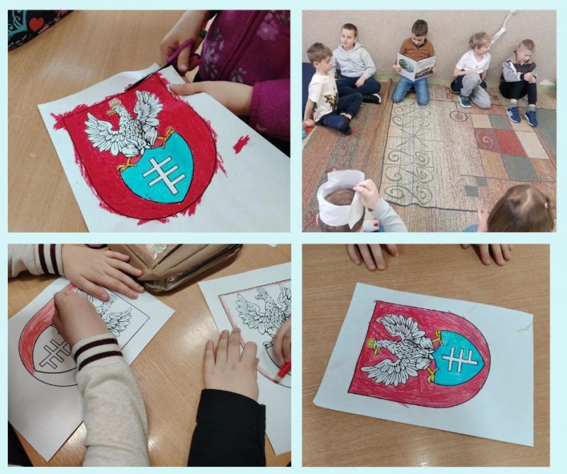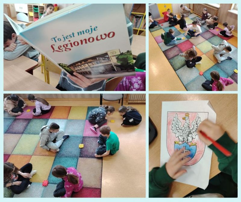 Dzieci podczas zajęć świetlicowych rozmawiały o tym, czym jest ojczyzna i dlaczego warto znać miejsce, w którym się mieszka. Uczniowie opowiadali o Polsce oraz o swoim mieście – Legionowie, zwracając uwagę na to, że ojczyzna to zarówno cały kraj, jak i najbliższa okolica, w której żyją na co dzień. Poznały podstawowe informacje o Legionowie, jego położenie w województwie mazowieckim oraz fakt, że miasto posiada własny herb będący ważnym symbolem lokalnej wspólnoty. Dzieci kolorowały herb Legionowa, dzięki czemu mogły lepiej zapamiętać jego wygląd i zrozumieć znaczenie symboli, które się na nim znajdują. Następnie odszukały Legionowo na mapie Polski, utrwalając pojęcia kraj–województwo–miasto oraz ucząc się orientacji na mapie. Zobaczyły, gdzie znajduje się ich miejsce zamieszkania w stosunku do innych regionów i dużych miast. Zajęcia pomogły dzieciom zrozumieć, że każdy z nas jest częścią swojej małej i dużej ojczyzny, a znajomość symboli i położenia własnego miasta buduje poczucie przynależności i lepsze rozumienie otaczającego świata.
