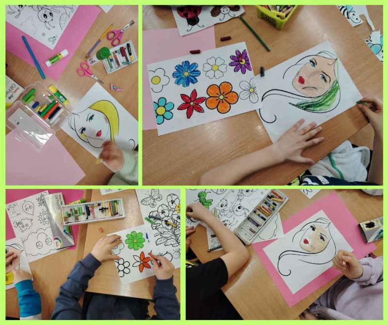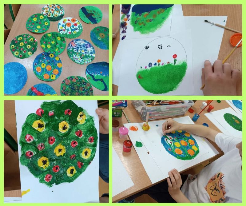 W ramach tygodniowego cyklu zajęć świetlicowych realizowano temat „Co w trawie piszczy?”, którego celem było wprowadzenie dzieci w atmosferę nadchodzącej wiosny oraz rozwijanie ich kreatywności i wrażliwości na przyrodę. Uczniowie wykonali portret Pani Wiosny, wykorzystując różnorodne materiały plastyczne, co pozwoliło im wyrazić własne wyobrażenia o tej porze roku. Kolejnym działaniem było sianie owsa, dzięki czemu dzieci mogły obserwować proces wzrostu roślin i uczyć się podstaw pielęgnacji młodych kiełków. W części plastycznej uczniowie stworzyli również malarską interpretację wiosennej łąki w formie koła, pracując farbami plakatowymi i rozwijając umiejętność komponowania obrazu. Tydzień upłynął w twórczej atmosferze, a wykonane prace wprowadziły do świetlicy wyraźny, wiosenny nastrój.