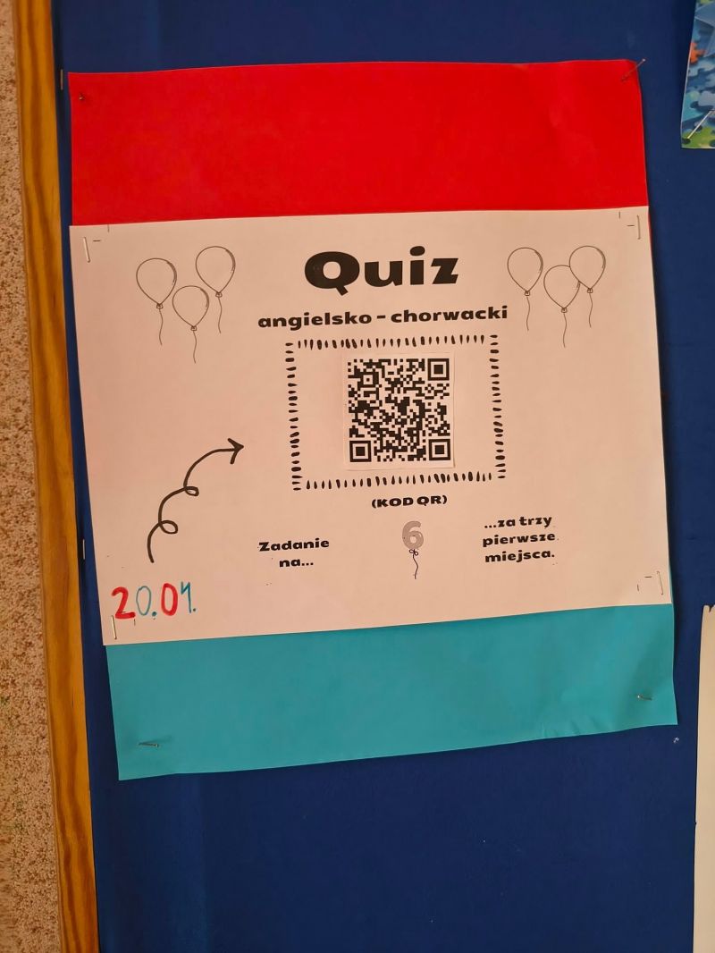 11 kwietnia obchodzony był Dzień Przyjaźni Polsko-Chorwackiej. Z tej okazji uczniowie klas 4–8 przygotowali balony w kolorach chorwackiej flagi, na których umieścili tłumaczenia nazw przedmiotów szkolnych na język angielski oraz chorwacki. Balony ozdobiły szkolne korytarze, a także stworzyły uczniom okazję do rozbudzenia ciekawości językowej.